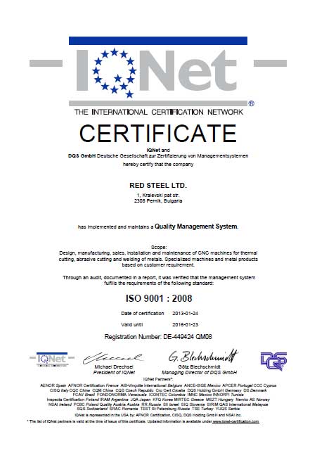 Red Steel Ltd. has implemented and maintains a Quality Management System ISO 9001:2008 with the following scope: